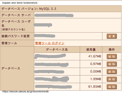 データベース サーバ、データベース ユーザ名、パスワード、データベース名です。これはwordpressやMovable Typeを設定する際にも必要な情報ですので、押さえておきましょう。