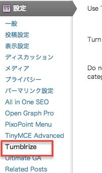 設定タブの中にTumblrizeができていますのでクリックして開く。